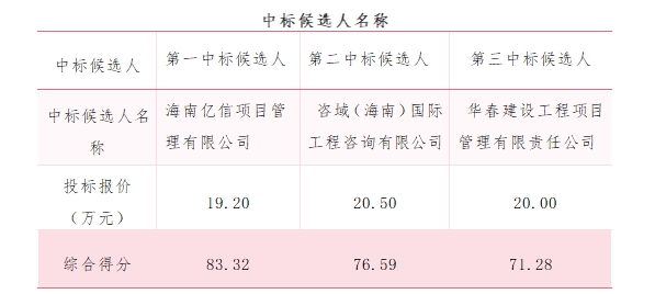 根據(jù)相關(guān)法律法規(guī)及比選文件的規(guī)定,長沙市公路橋梁建設(shè)有限責(zé)任公司海口至洋浦一小時交通圈西線高速公路白蓮立交至白馬井段改建工程二標(biāo)段項目工程造價咨詢服務(wù)項目于2023年10月26日在長沙市公路橋梁建設(shè)有限責(zé)任公司官網(wǎng)發(fā)布比選公告,已于2023年11月17日舉行了開標(biāo)、評標(biāo),評標(biāo)工作由相關(guān)專業(yè)人員組成的評標(biāo)委員會完成,評標(biāo)委員會按照比選文件確定的評標(biāo)辦法,對有效投標(biāo)文件進行了評審。評標(biāo)委員會經(jīng)過評審,現(xiàn)將相關(guān)信息予以公示: